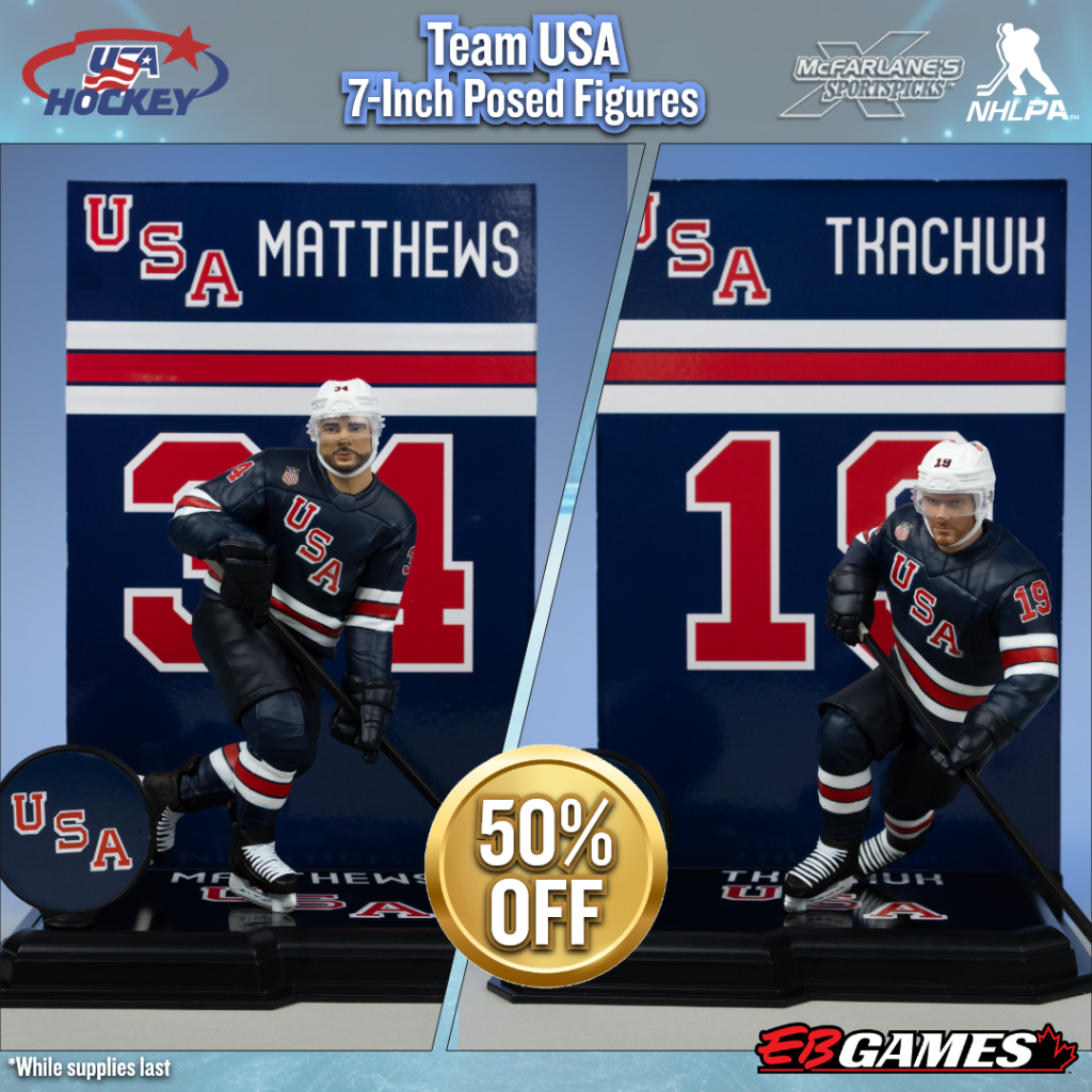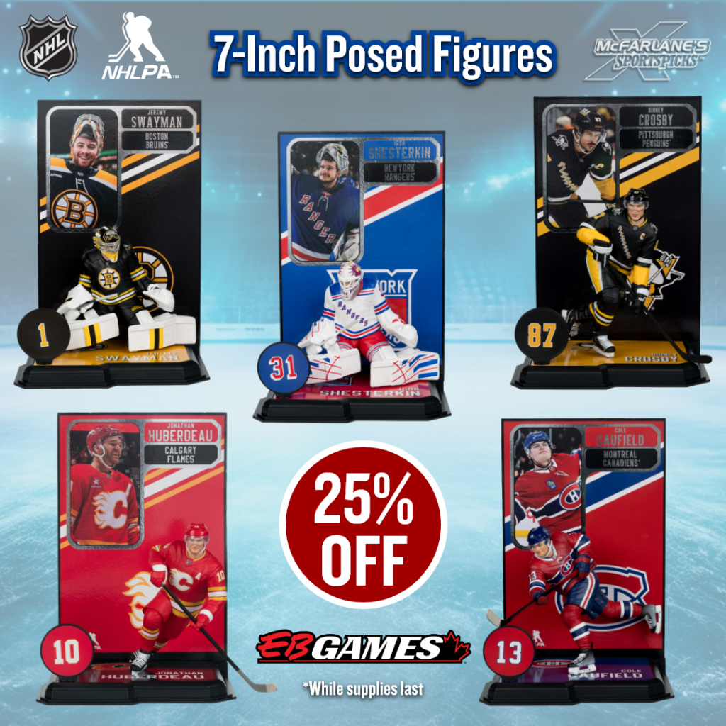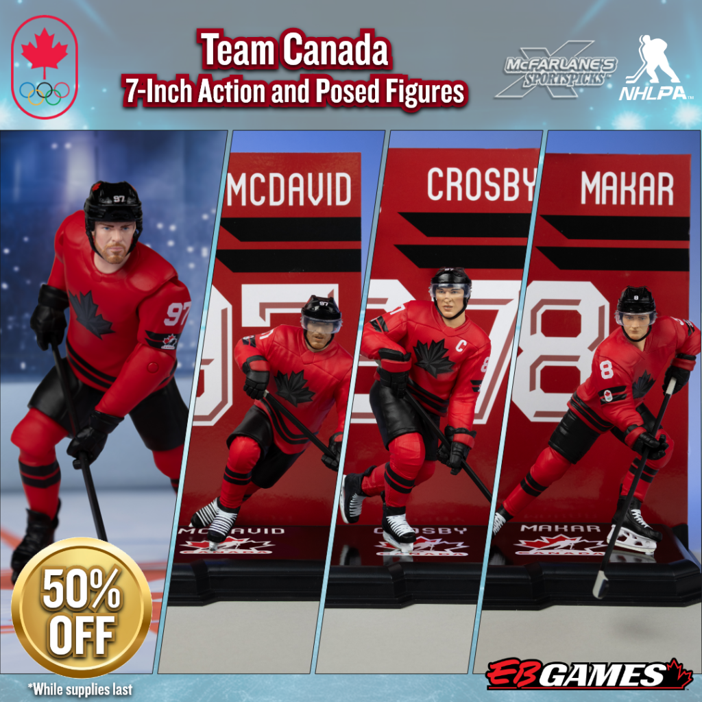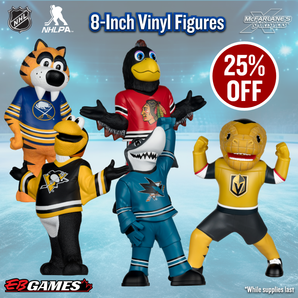 Profitez d’importants rabais sur les figurines de hockey olympique (50 % de réduction) ainsi que sur les figurines de joueurs et mascottes de la LNH (25 % de réduction) chez EB Games Canada, jusqu’à épuisement des stocks.